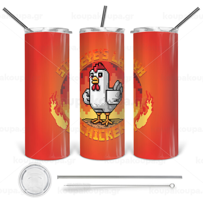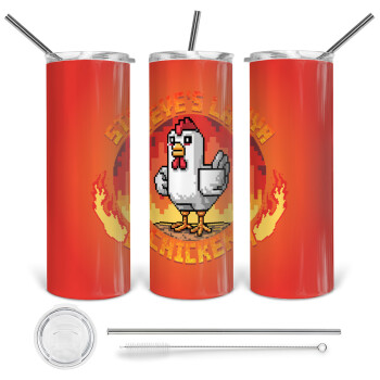 Steve's Lava Chicken, Tumbler stainless steel 600ml, with metal straw & cleaning brush