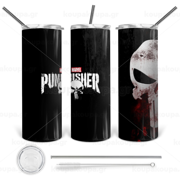 The punisher, Tumbler stainless steel 600ml, with metal straw & cleaning brush