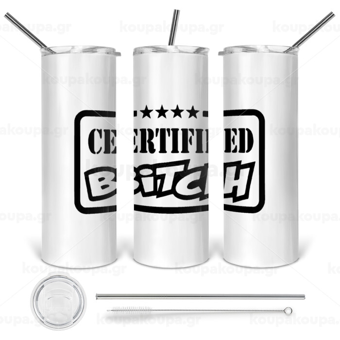 Certified Bitch, Tumbler stainless steel 600ml, with metal straw & cleaning brush