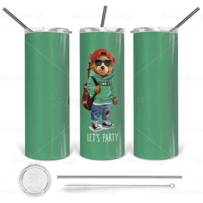 Let's Party Bear, Tumbler stainless steel 600ml, with metal straw & cleaning brush