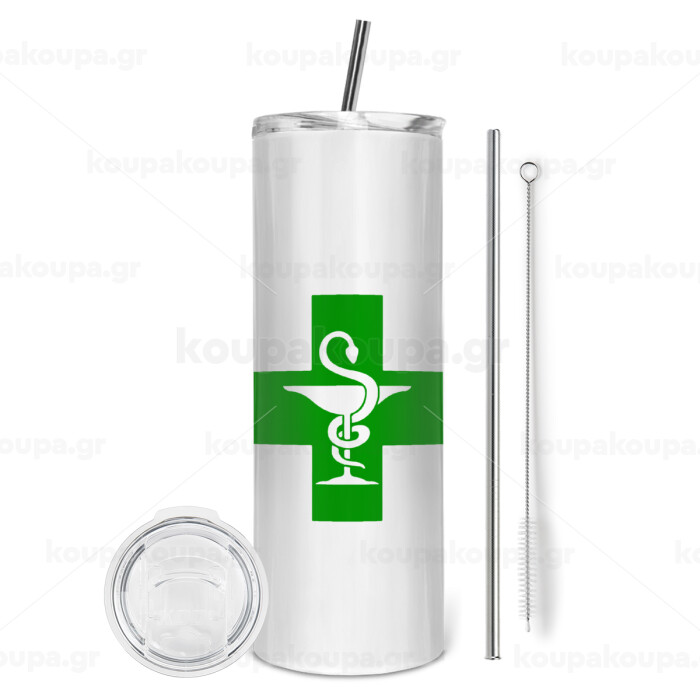 Φαρμακείο, Tumbler stainless steel 600ml, with metal straw & cleaning brush