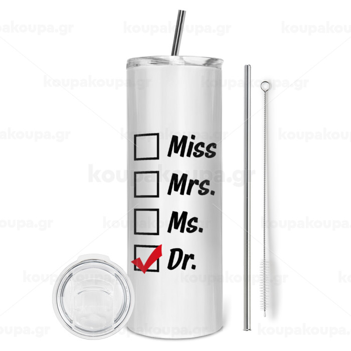 Miss, Mrs, Ms, DR, Tumbler stainless steel 600ml, with metal straw & cleaning brush