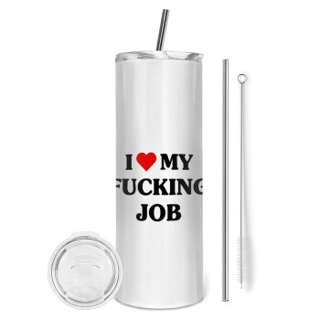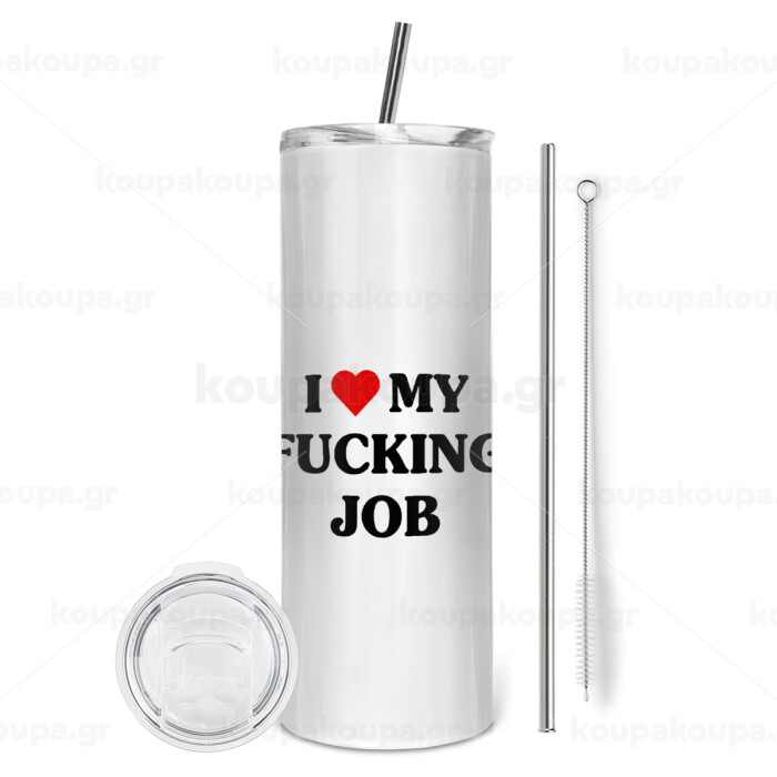 I love my fucking job, Tumbler stainless steel 600ml, with metal straw & cleaning brush