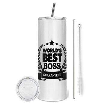 World's best boss stars, Tumbler stainless steel 600ml, with metal straw & cleaning brush