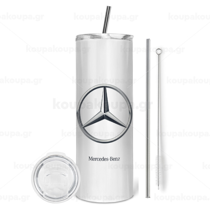 mercedes, Tumbler stainless steel 600ml, with metal straw & cleaning brush