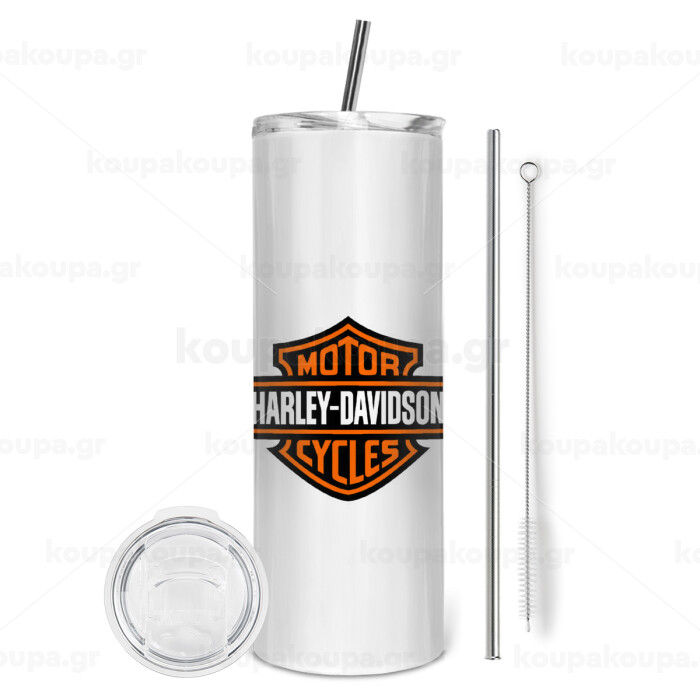 Motor Harley Davidson, Tumbler stainless steel 600ml, with metal straw & cleaning brush