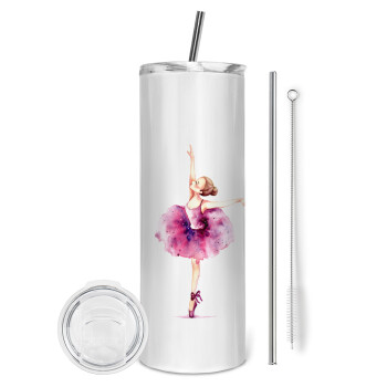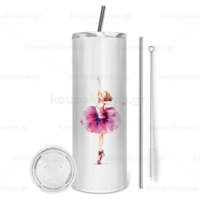 Ballerina watercolor, Tumbler stainless steel 600ml, with metal straw & cleaning brush