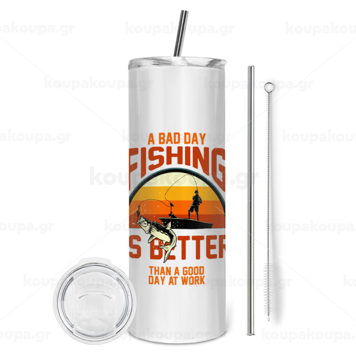 A bad day FISHING is better than a good day at work, Tumbler stainless steel 600ml, with metal straw & cleaning brush