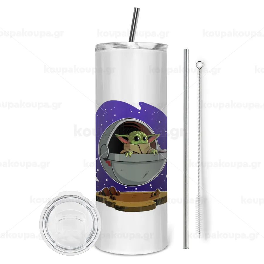 Baby Yoda mandalorian, Tumbler stainless steel 600ml, with metal straw & cleaning brush