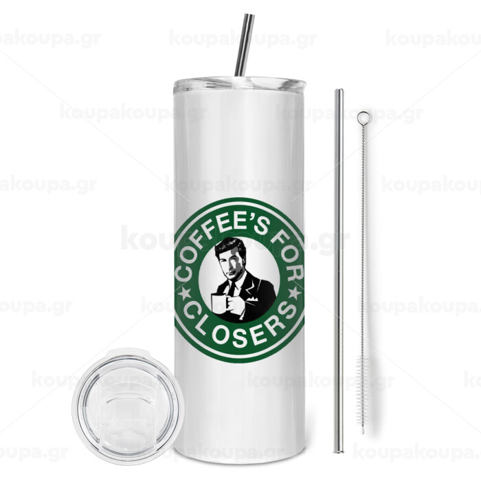 Coffee's for closers, Tumbler stainless steel 600ml, with metal straw & cleaning brush