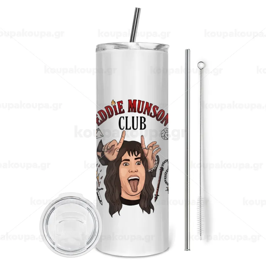 Eddie Munson, Hellfire CLub, Stranger Things, Tumbler stainless steel 600ml, with metal straw & cleaning brush