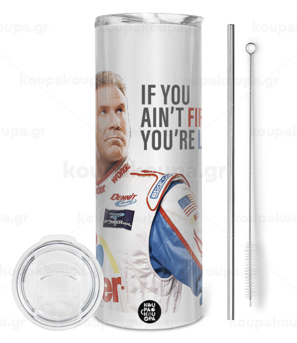If You Ain't First You're Last Ricky Bobby, Talladega Nights, Tumbler stainless steel 600ml, with metal straw & cleaning brush