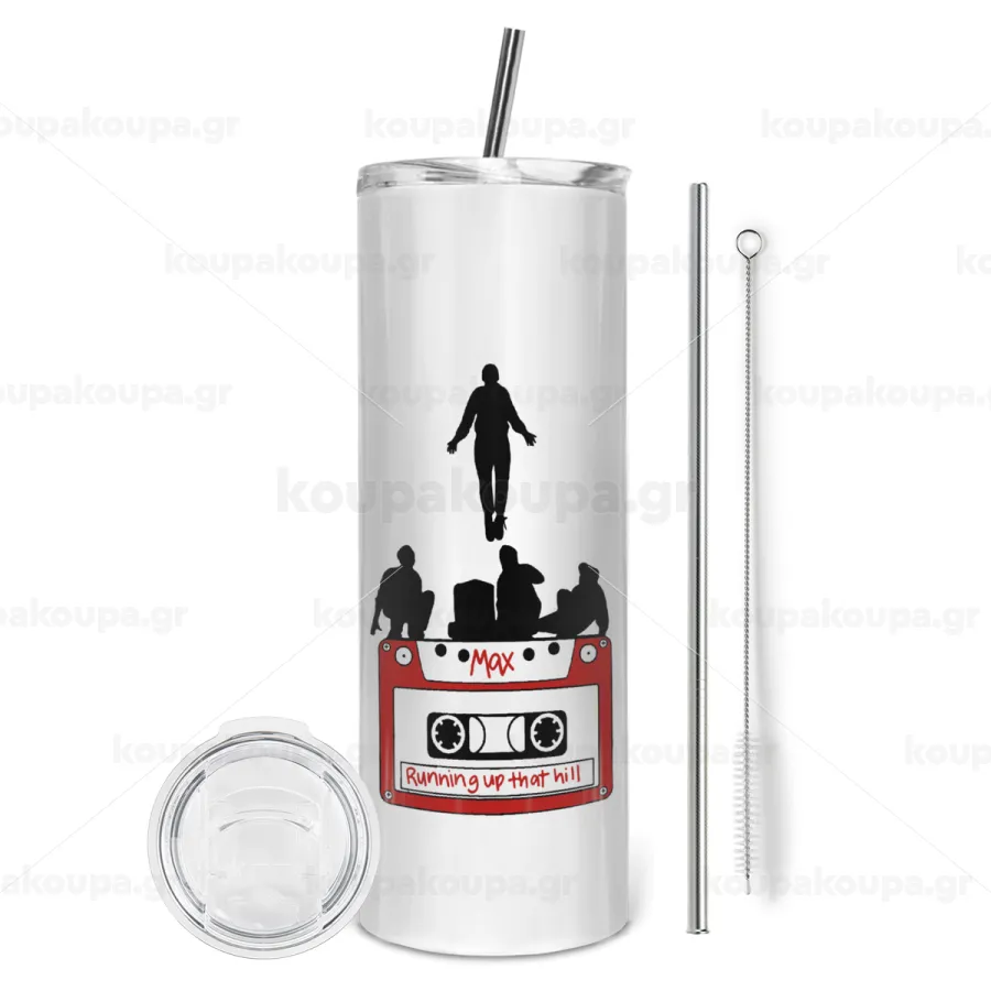 Running up that hill, Stranger Things, Tumbler stainless steel 600ml, with metal straw & cleaning brush