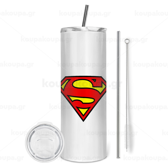 Superman vintage, Tumbler stainless steel 600ml, with metal straw & cleaning brush