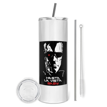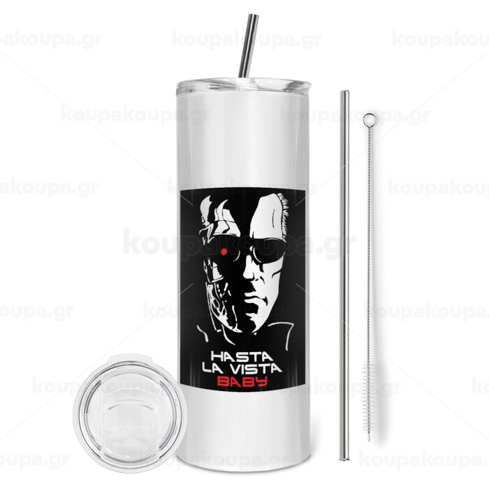 Terminator Hasta La Vista, Tumbler stainless steel 600ml, with metal straw & cleaning brush