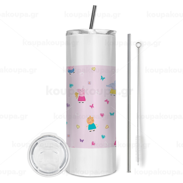 Πέππα το γουρουνάκι και οι φίλοι της, Tumbler stainless steel 600ml, with metal straw & cleaning brush