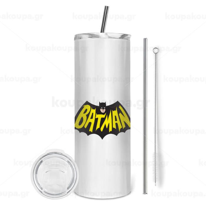 Batman classic logo, Tumbler stainless steel 600ml, with metal straw & cleaning brush