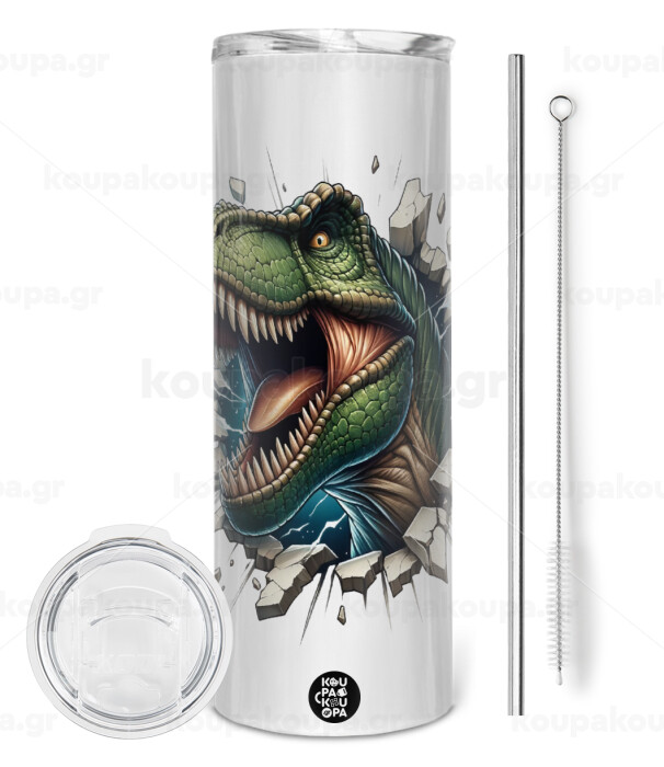 Dinosaur break wall, Tumbler stainless steel 600ml, with metal straw & cleaning brush