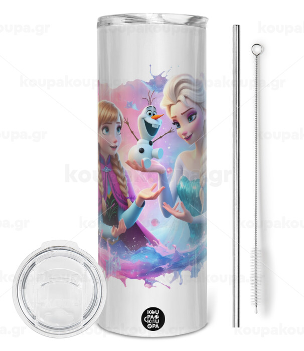 Elsa & Anna Princess, Tumbler stainless steel 600ml, with metal straw & cleaning brush
