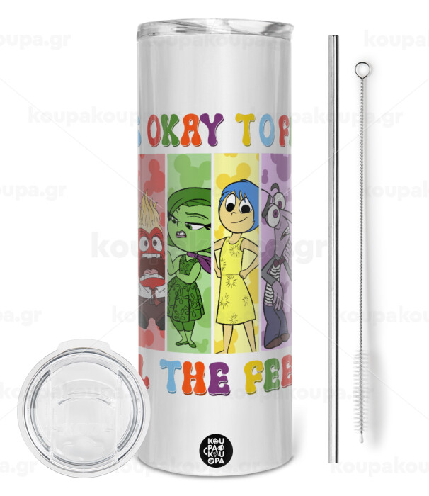 Inside Out It's Okay To Feel All The Feels , Tumbler stainless steel 600ml, with metal straw & cleaning brush