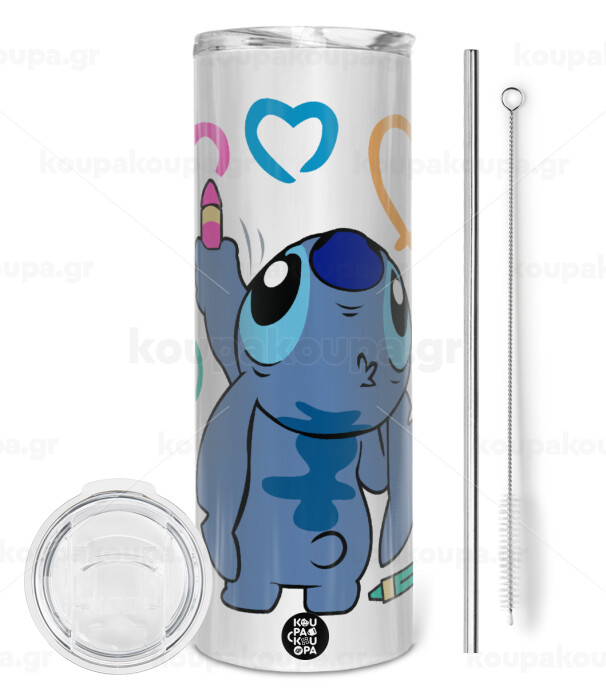 Lilo & Stitch painting, Tumbler stainless steel 600ml, with metal straw & cleaning brush