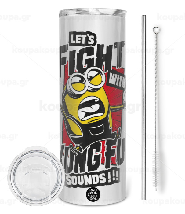 Minions Let's fight with kung fu sounds, Tumbler stainless steel 600ml, with metal straw & cleaning brush