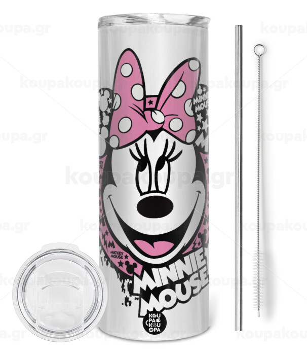 Minnie mouse, Tumbler stainless steel 600ml, with metal straw & cleaning brush