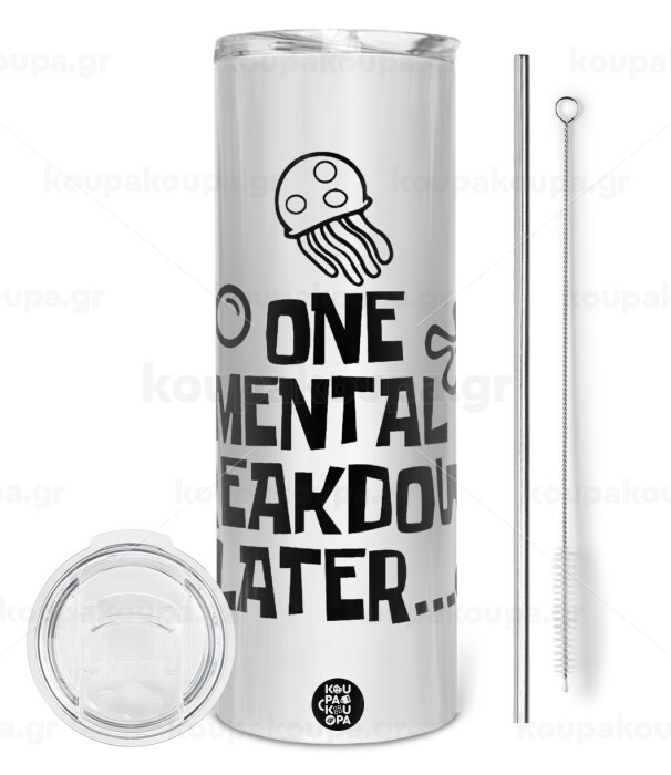 one mental breakdown later bob spongebob, Tumbler stainless steel 600ml, with metal straw & cleaning brush