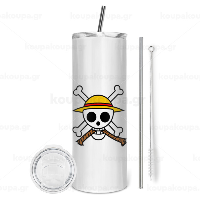Onepiece skull, Tumbler stainless steel 600ml, with metal straw & cleaning brush