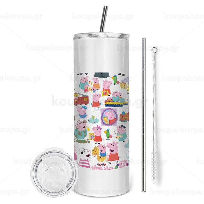 Peppa pig Characters, Tumbler stainless steel 600ml, with metal straw & cleaning brush