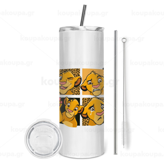 Simba, lion king, Tumbler stainless steel 600ml, with metal straw & cleaning brush