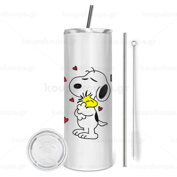 Snoopy Love, Tumbler stainless steel 600ml, with metal straw & cleaning brush