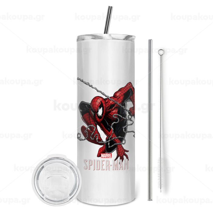 Spider-man, Tumbler stainless steel 600ml, with metal straw & cleaning brush