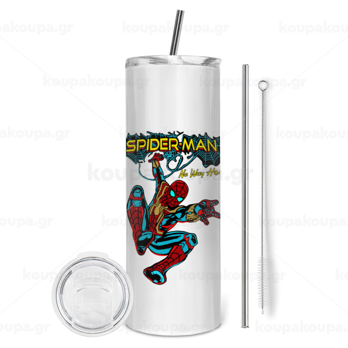 Spiderman no way home, Tumbler stainless steel 600ml, with metal straw & cleaning brush