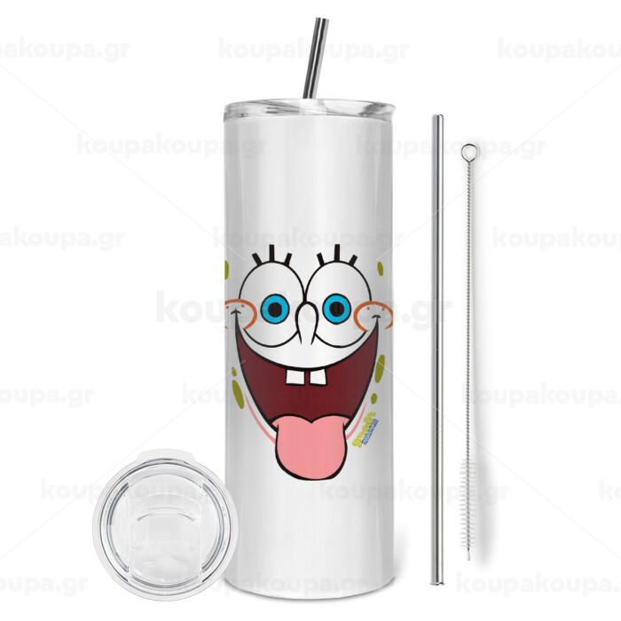 SpongeBob SquarePants smile, Tumbler stainless steel 600ml, with metal straw & cleaning brush