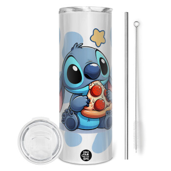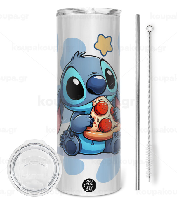 Stitch Pizza, Tumbler stainless steel 600ml, with metal straw & cleaning brush