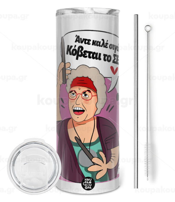 Αντε καλέ, σιγά, κόβεται το σέξ ;, Tumbler stainless steel 600ml, with metal straw & cleaning brush