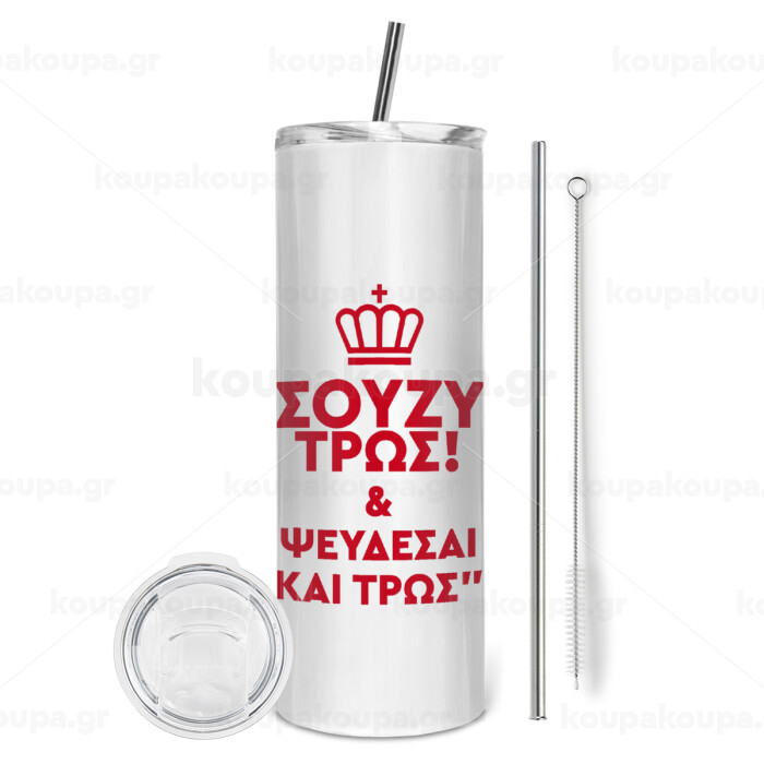 Σούζυ και ψεύδεσαι και τρως, Tumbler stainless steel 600ml, with metal straw & cleaning brush