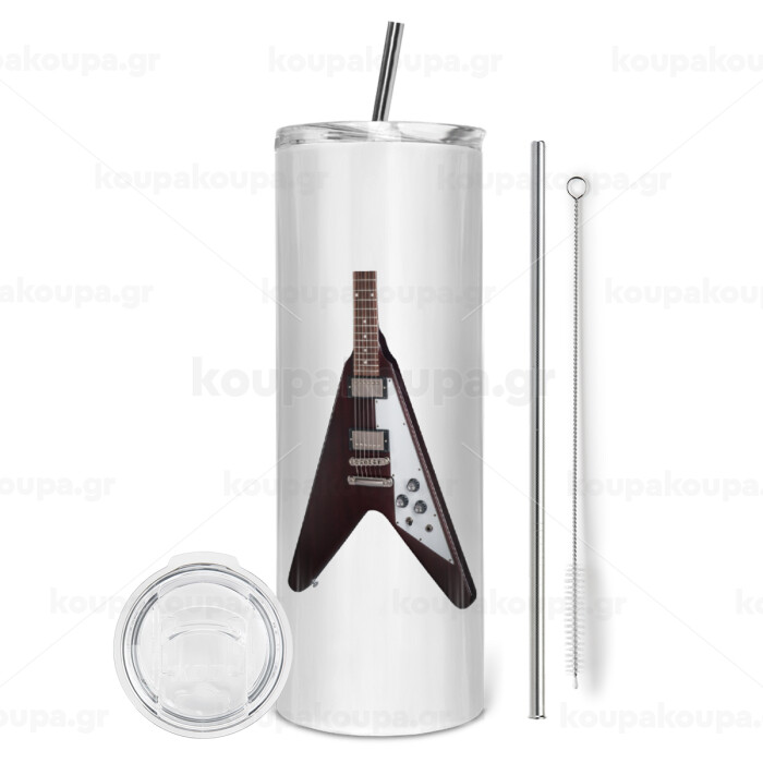 Guitar flying V, Tumbler stainless steel 600ml, with metal straw & cleaning brush