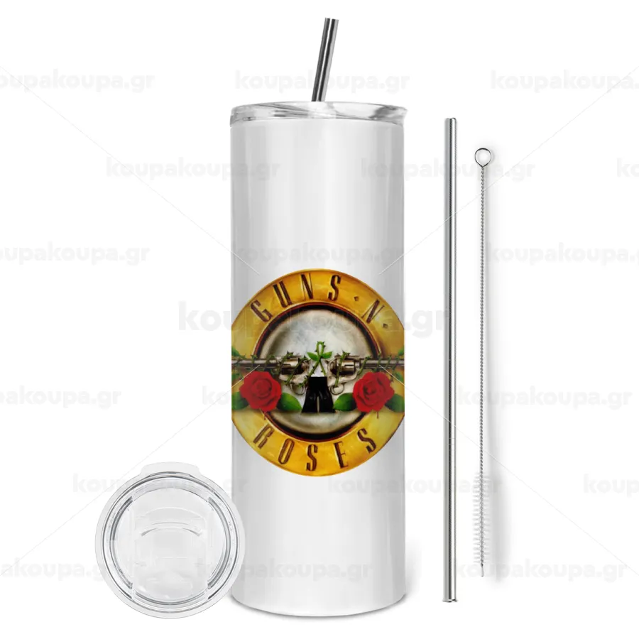 Guns N' Roses, Tumbler stainless steel 600ml, with metal straw & cleaning brush