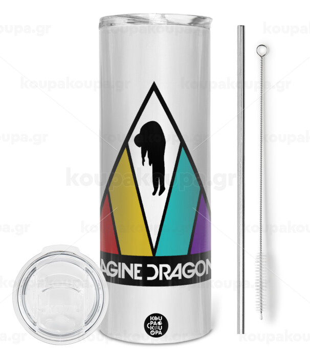 Imagine Dragons, Tumbler stainless steel 600ml, with metal straw & cleaning brush