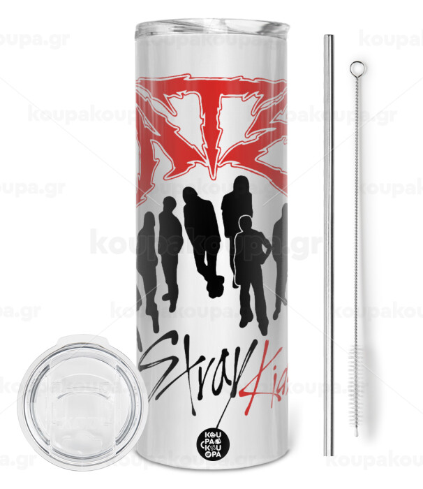 Stray Kids Boy band, Tumbler stainless steel 600ml, with metal straw & cleaning brush