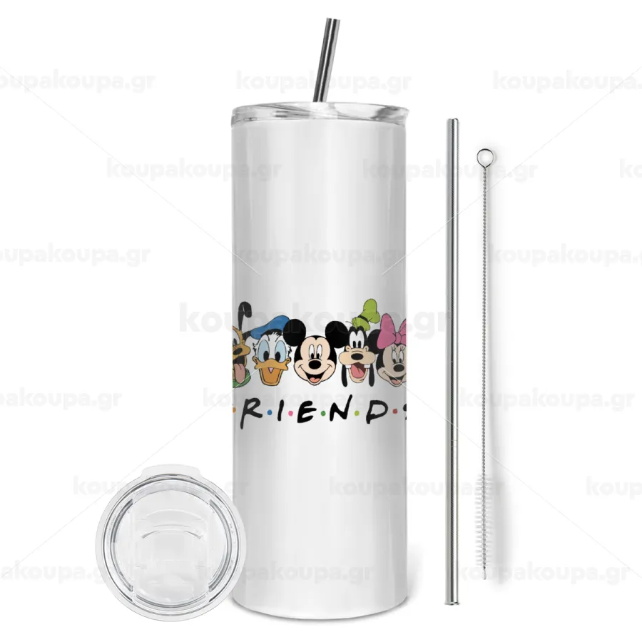 Friends characters, Tumbler stainless steel 600ml, with metal straw & cleaning brush