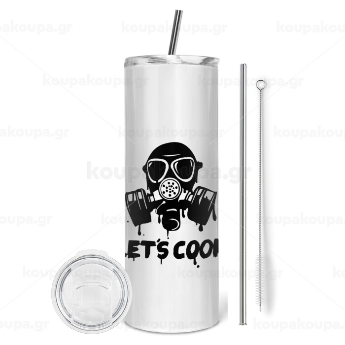 Let's cook mask, Tumbler stainless steel 600ml, with metal straw & cleaning brush