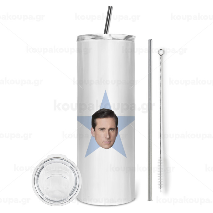 michael the office star, Tumbler stainless steel 600ml, with metal straw & cleaning brush