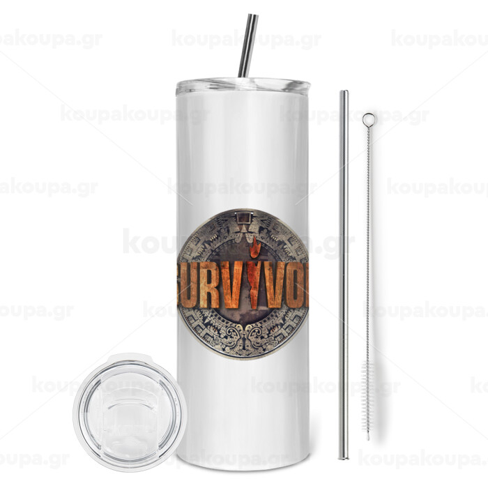 Survivor, Tumbler stainless steel 600ml, with metal straw & cleaning brush