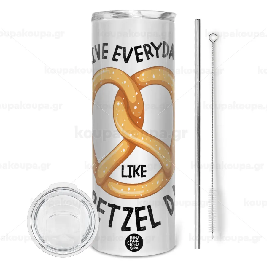 The office, Live every day like pretzel day, Tumbler stainless steel 600ml, with metal straw & cleaning brush