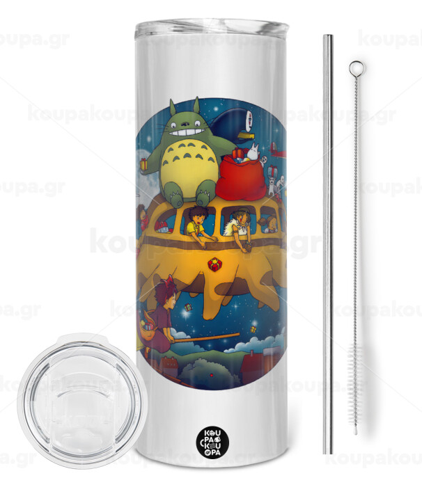 Totoro Catbus, Tumbler stainless steel 600ml, with metal straw & cleaning brush