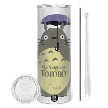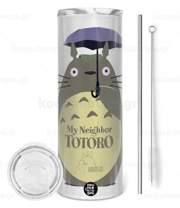 Totoro from My Neighbor Totoro, Tumbler stainless steel 600ml, with metal straw & cleaning brush