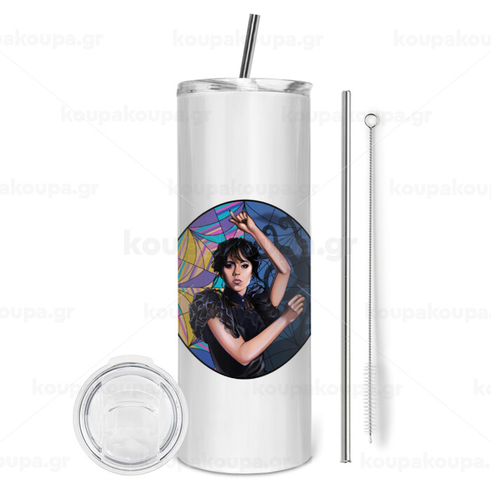 Wednesday dance, Tumbler stainless steel 600ml, with metal straw & cleaning brush